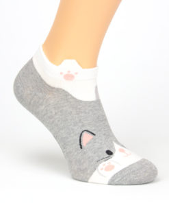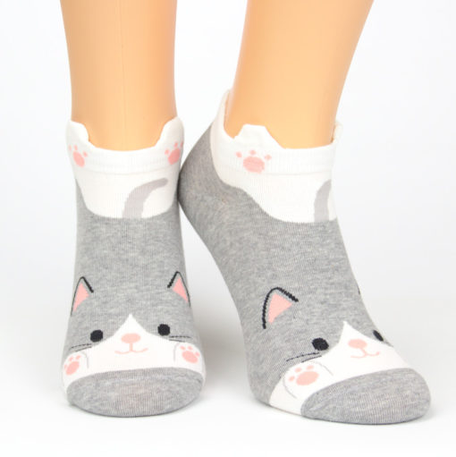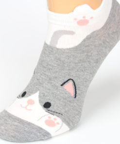 Sehr schöne niedliche Sneaker-Socken mit einem grau weißen schwanzwedelnden Katze, der die Freude direkt anzusehen ist. Die in weichem grau gehaltenen Socken stellen die schwanzwedelnde Katze voll in Szene. Wunderschöne Socken, die Ihren Fuß zu etwas Besonderem machen.