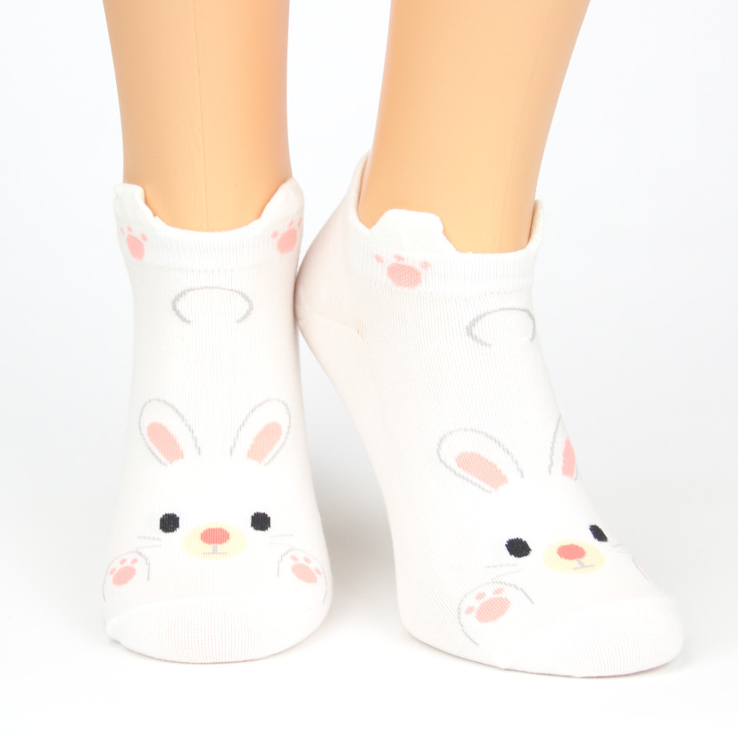 Diese Sneaker-Socken mit dem weißen Hasen haben eine ausgesprochen hohe Qualität, und sind hergestellt aus einem Baumwollgemisch. Sie schmiegen sich durch die hohe Elastizität jedem individuellen Fuß sehr gut an ohne dabei zu drücken. Diese Sneaker-Socken haben eine perfekte Passform, die Sie begeistern wird.
